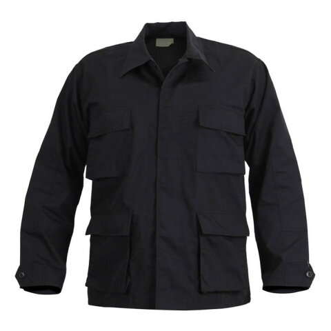 楽天BOX受取対象商品 ロスコ<Rothco> SWATモデル 戦闘服 B.D.U. リップストップ ジャケット ●アメリカ軍も採用している戦闘服ではない軍服「BDUジャケット」のレプリカ 今も米軍で着られている軍服のBDUジャケットとは、 「バトル ドレス ユニホーム」の略です カラーブラック 素材綿35%、ポリエステル65%※リップストップ ■サイズ展開(cm):XS S M L XL 胸囲肩幅着丈袖丈 XS105447360 S110487460 M115517661 L125537762 XL115557862 ※表面のサイズを測っています。